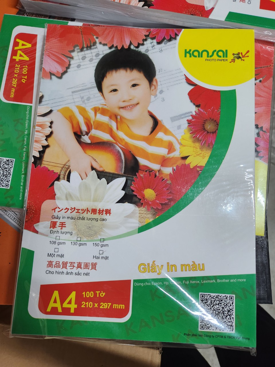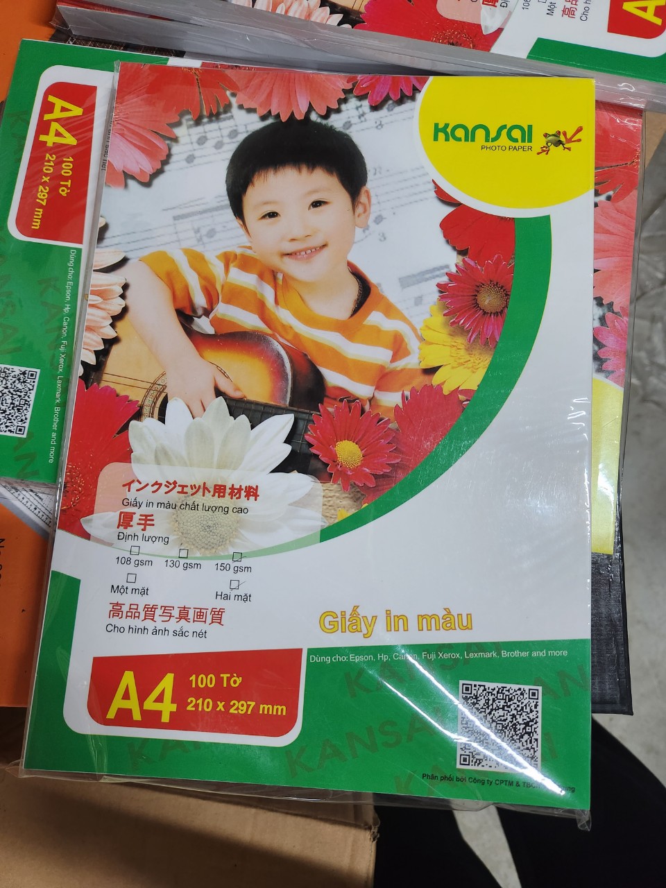 Giấy in phun màu hai mặt Kansai một mặt định lượng 140gsm, sử dụng cho tất cả các loại máy in phun màu