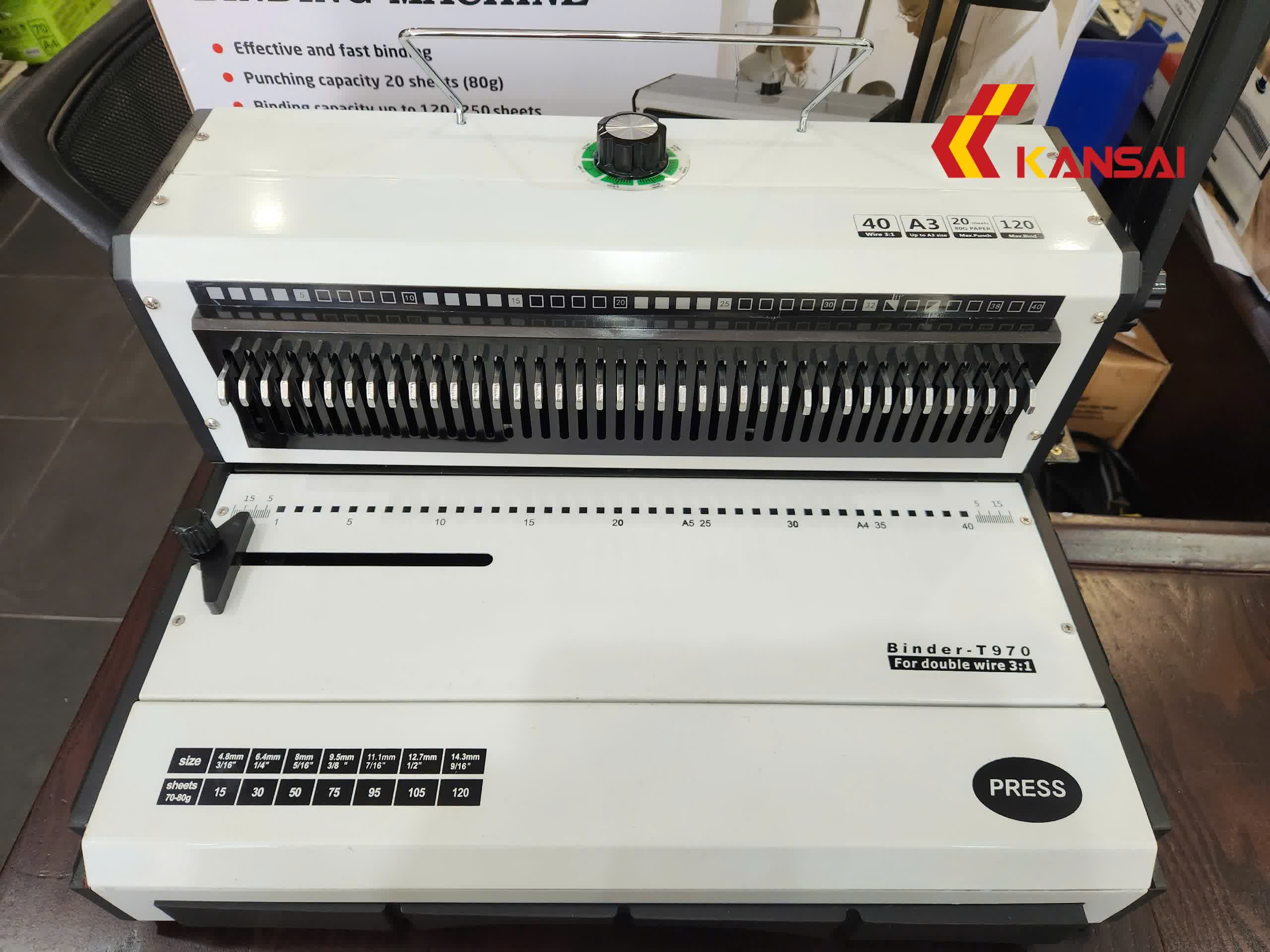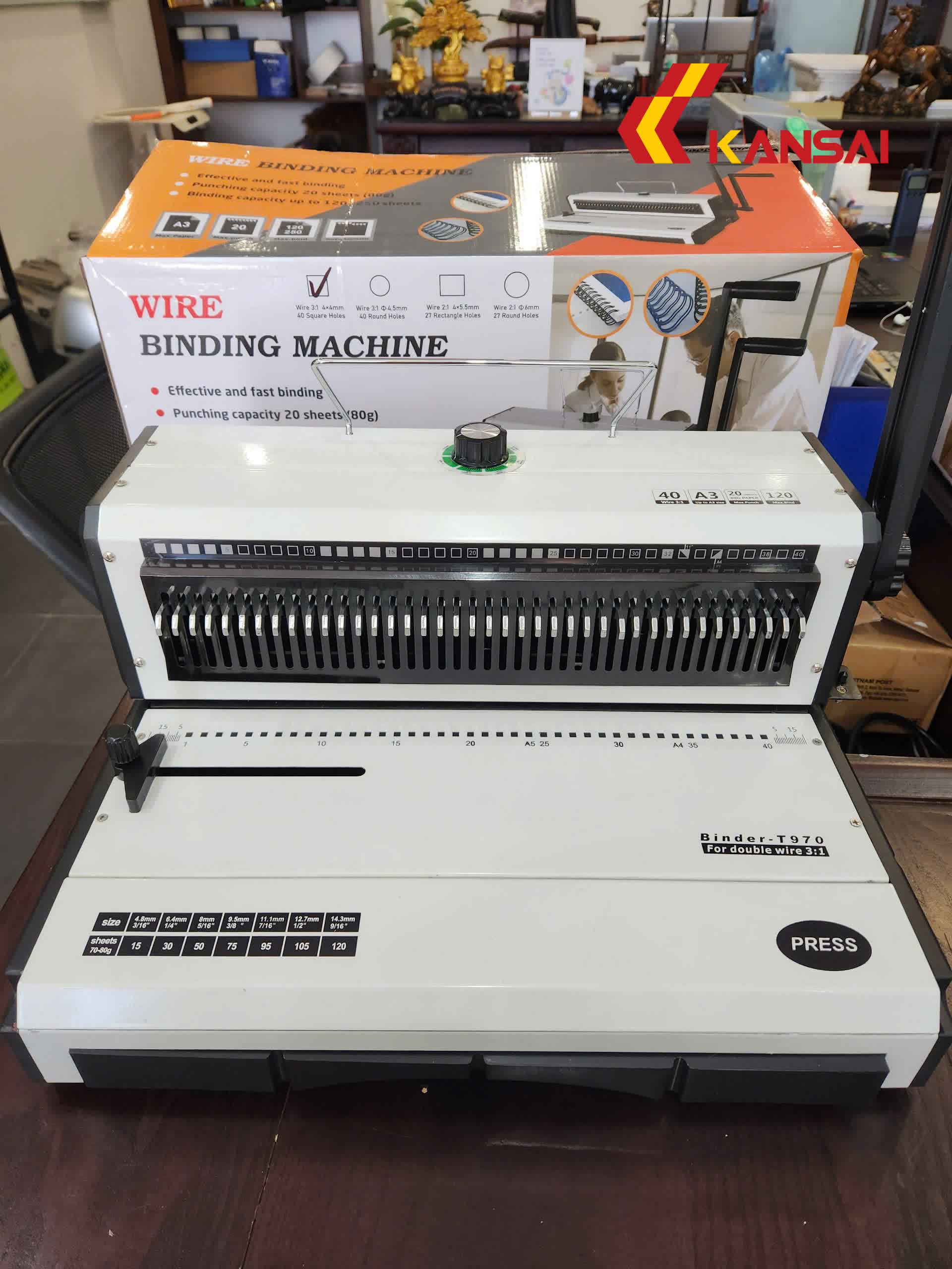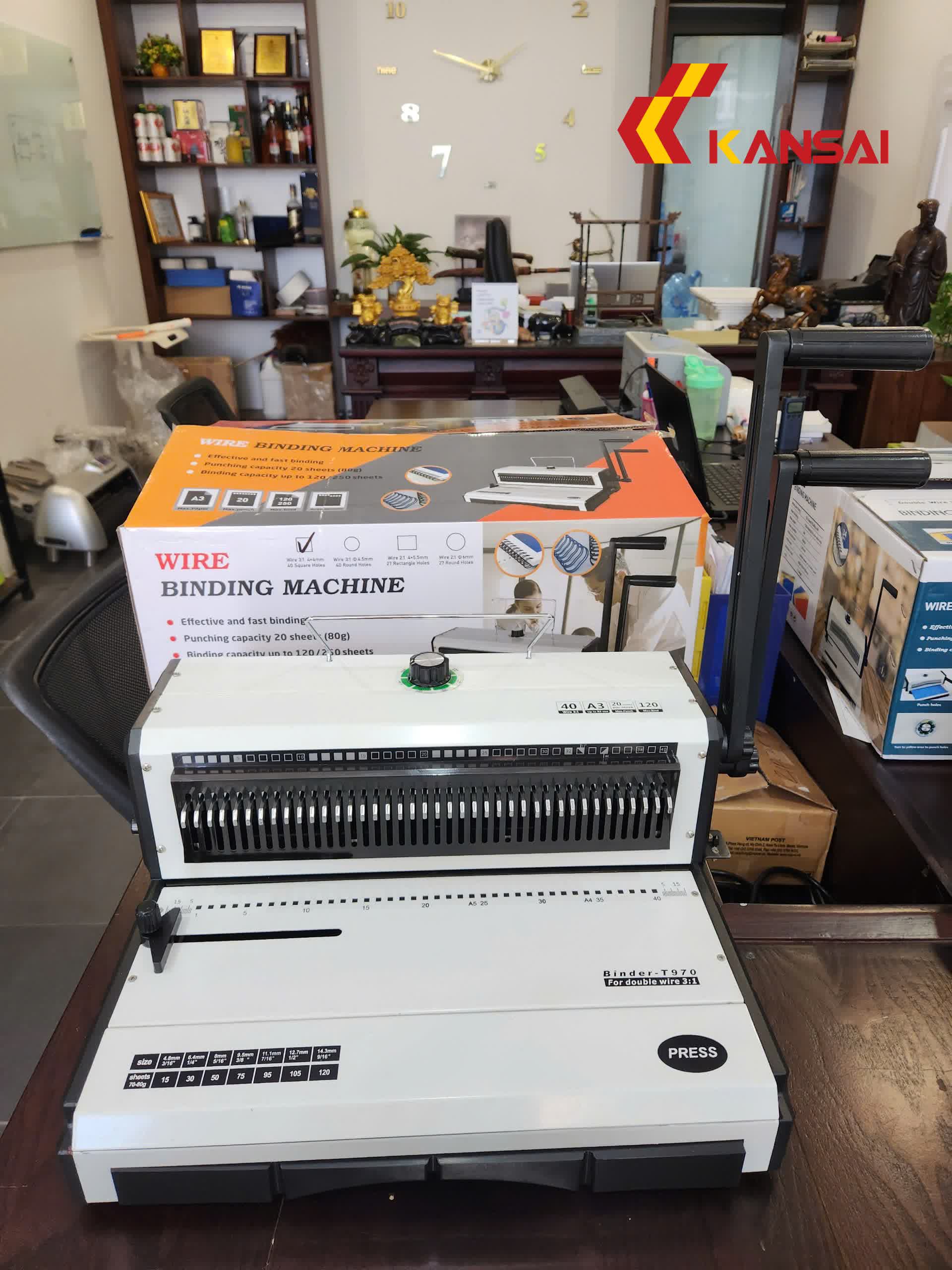 | Máy đóng gáy xoắn Binder T970 : – Máy đóng bằng tay, dùng lò xo kẽm kép – Bước răng: 3:1 – Đục được 20 tờ/lần với lỗ đóng hình vuông – Khổ giấy đóng lớn nhất: F4 (330mm) – Dùng được các kích thước lò xo kẽm kép từ 4.7mm đến 14.3mm – Chức năng canh lề, chỉnh gáy – Chức năng bỏ lỗ theo yêu cầu. – Dao đóng sắc bén bằng kim loại đặc biệt siêu bền – Kích thước: 450x340x210 mm – Trọng lượng: 17kg – Hãng sản xuất: YIBO – Xuất xứ: Trung Quốc, công nghệ Mỹ – Bảo hành 12 tháng |