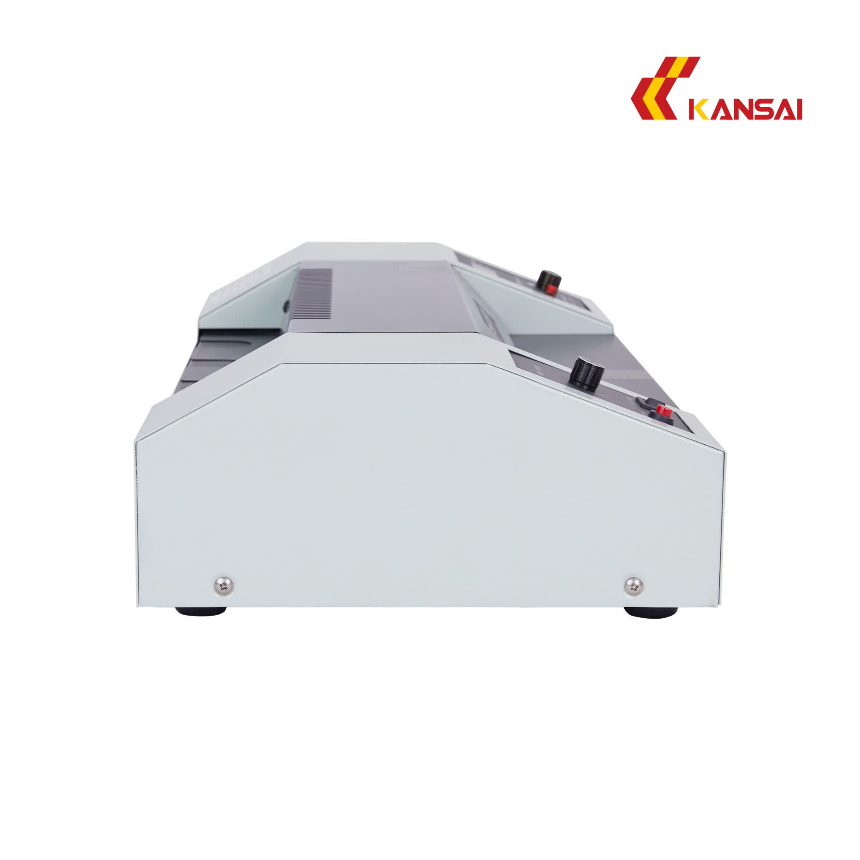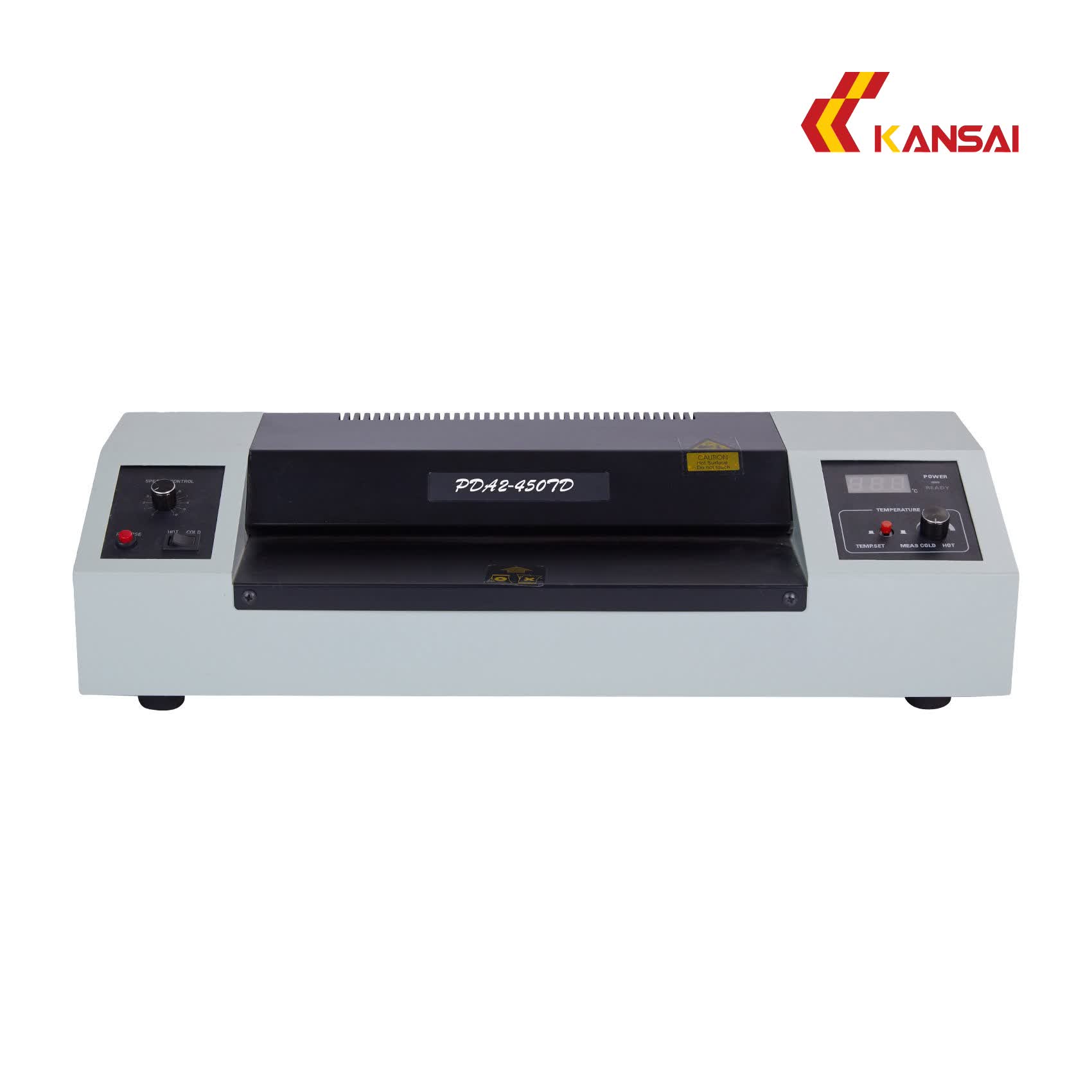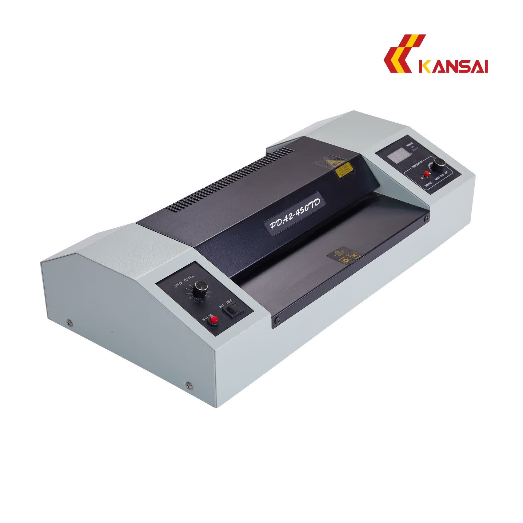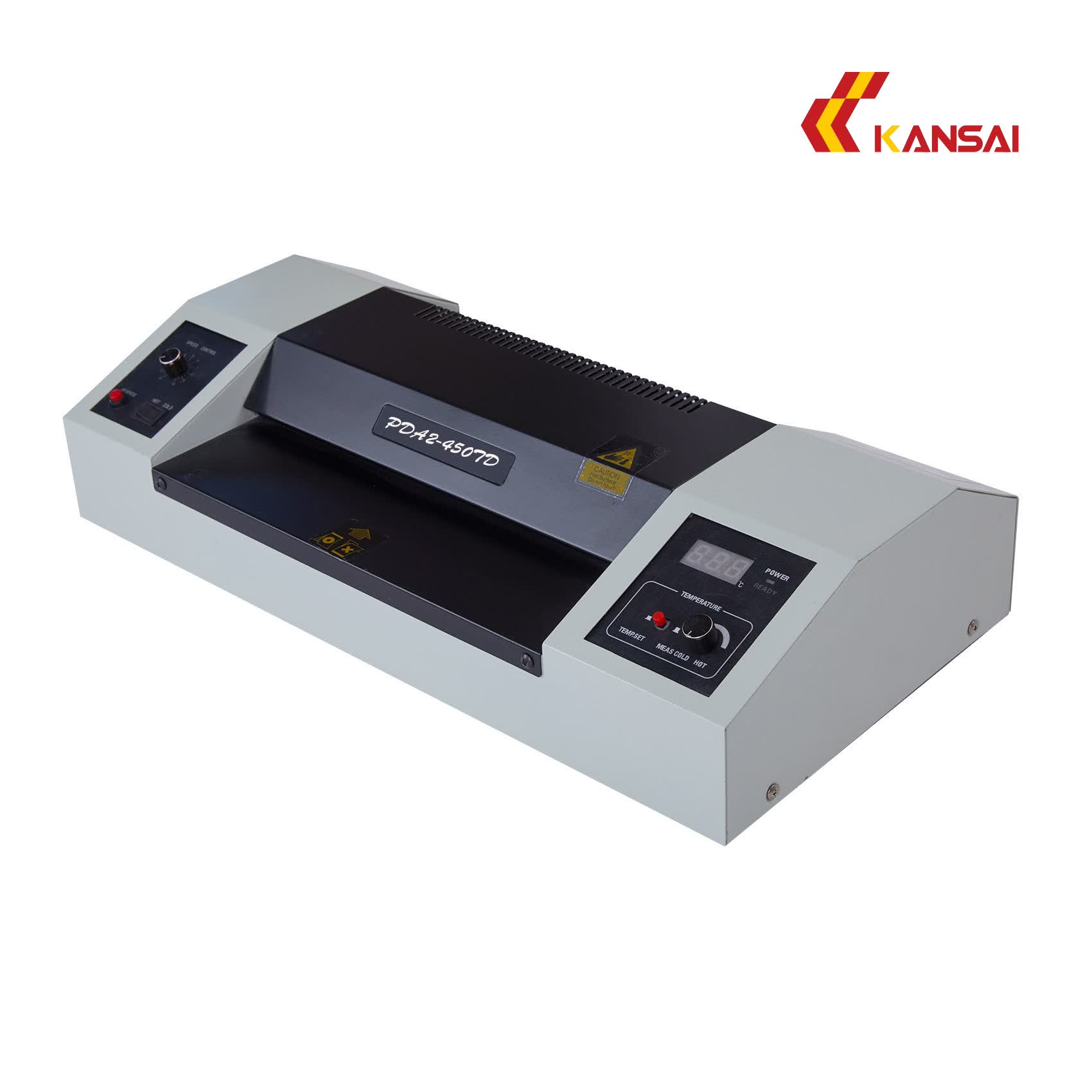 Máy ép plastic PDA2-450TD (khổ A2) : –        Độ dày ép tối đa 2.0 mm –        Độ rộng ép tối đa: 450 mm –        Có 4 lô ép, cho bản ép mịn –        Thời gian khởi động: 3 – 5 phút –        Tốc độ ép nhanh, lên đến 2.000 mm/phút –        Tuỳ ý điều chỉnh tốc độ ép từ 400 –…